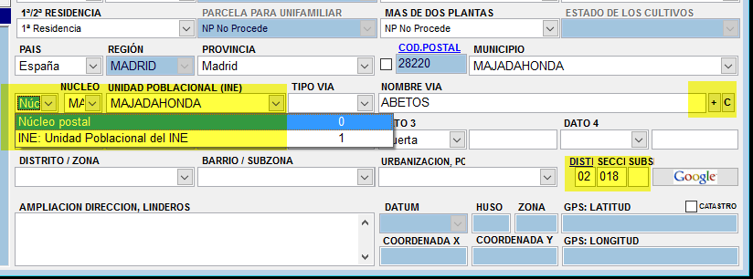 · Calle según el INE: Nuevo selector para determinar la calle según el INE, con el texto y el identificador de VIA del propio INE